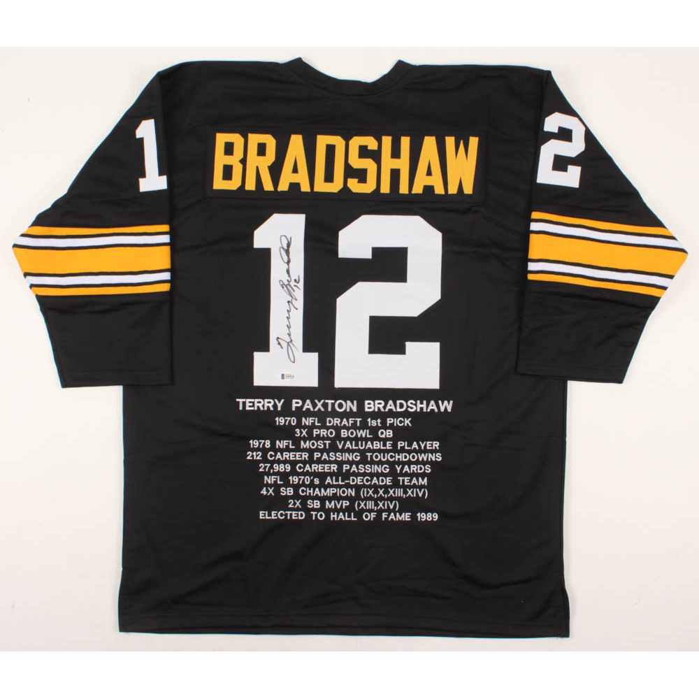 Terry Bradshaw Signed Career Highlight Stat Jersey Beckett Coa Pristine Auction